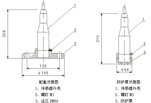 在现场环境较恶劣时,用户应选用传感器防护罩来保护传感器,以免被异物损坏或影响测量的准确性。