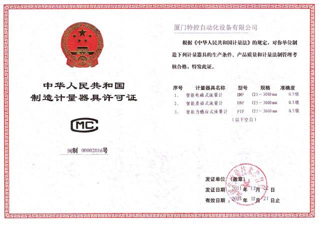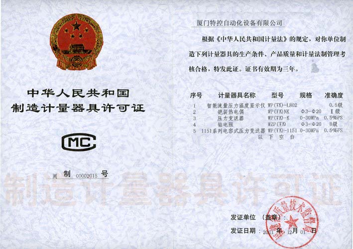 制造计量器具许可证